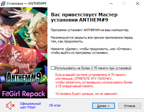 - Для установки репака требуется минимум 2 Гб свободной оперативной памяти (включая виртуальную)
