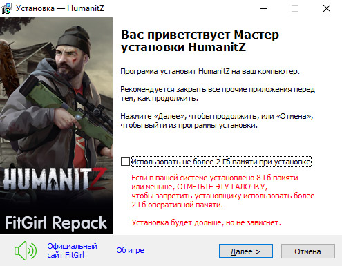 • Для установки репака требуется минимум 2 Гб свободной оперативной памяти (включая виртуальную)