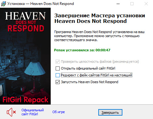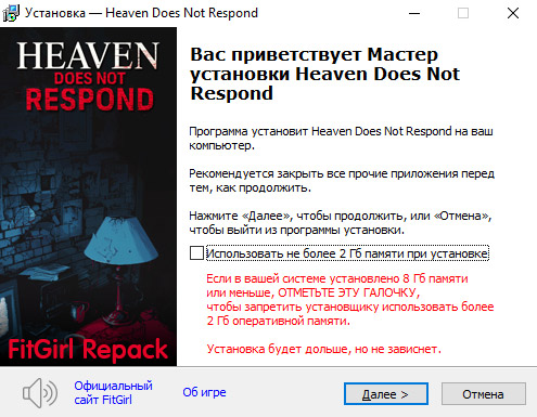 - Репак основан на ISO-образе Heaven.Does.Not.Respond-TENOKE: tenoke-heaven.does.not.respond.iso (5,138,845,696 байт)