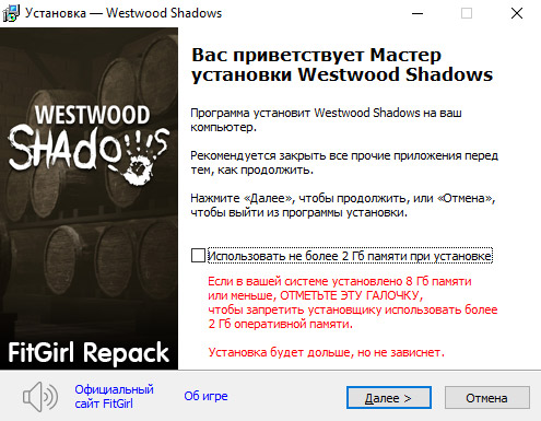 - Репак основан на ISO-образе Westwood.Shadows-SKIDROW: sr-westwoodshadows.iso (11,432,392,704 байт)