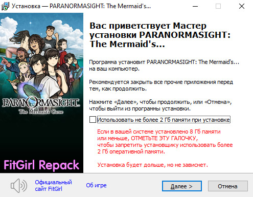 • Для установки репака требуется минимум 2 Гб свободной оперативной памяти (включая виртуальную)