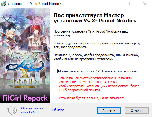 - Репак основан на ISO-образе Ys.X.Proud.Nordics-RUNE: rune-ys.x.proud.nordics.iso (8,101,462,016 байт)