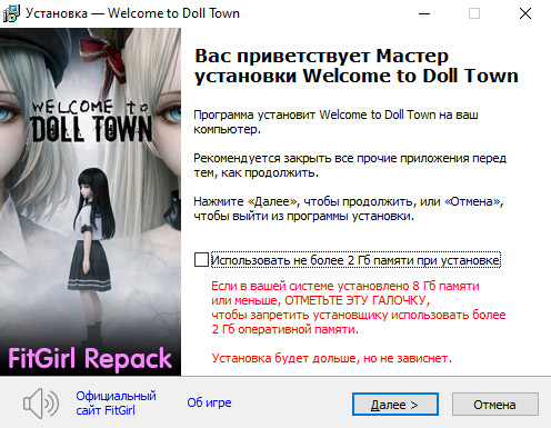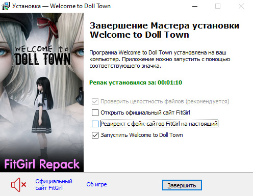 - Репак основан на ISO-образе Welcome.to.Doll.Town-TENOKE: tenoke-welcome.to.doll.town.iso (11,933,394,944 байта)