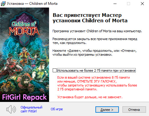 - Для установки репака требуется минимум 2 Гб свободной оперативной памяти (включая виртуальную)