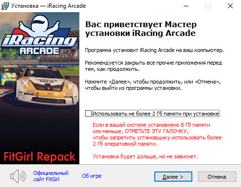 - Репак основан на ISO-образе iRacing.Arcade-RUNE: rune-iracing.arcade.iso (2,209,120,256 байт)