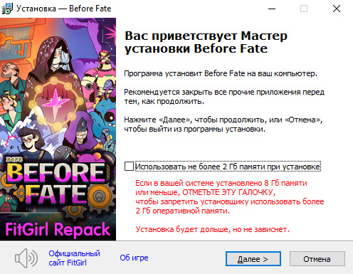 • Репак основан на ISO-образе Before.Fate-TENOKE: tenoke-before.fate.iso (21,661,288,448 байт)