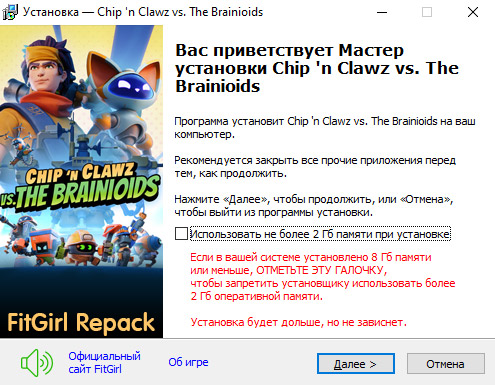- Для установки репака требуется минимум 2 Гб свободной оперативной памяти (включая виртуальную)