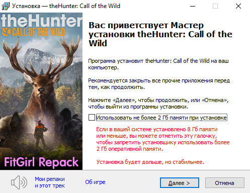 - Репак основан на ISO-релизе theHunter.Call.of.the.Wild.Alberta.Hunting.Preserve-TENOKE: tenoke-thehunter.call.of.the.wild.alberta.hunting.preserve.iso (109,178,972,160 байт)