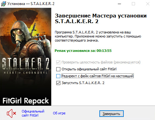 - После установки доступна опция проверки контрольных сумм всех файлов, чтобы убедиться, что репак установился нормально