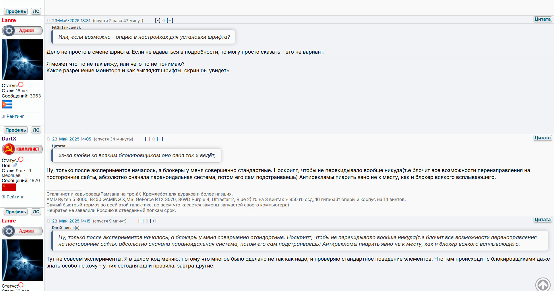 Lanre писал(а): FitGirl писал(а): Или, если возможно - опцию в настройках для установки шрифта? Дело не просто в смене шрифта. Если не вдаваться в подробности, то могу просто сказать - это не вариант.