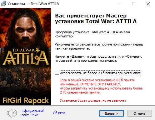 - Для установки репака требуется минимум 2 Гб свободной оперативной памяти (включая виртуальную)
