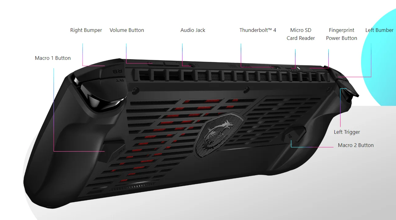 В компании отметили, что конструкция портативного ПК оптимизирована для длительных игровых сессий. По словам журналиста The Verge, хват у устройства действительно удобный. Тактильные кнопки и стики выполнены на базе датчиков Холла, чтобы избежать проблемы «дрейфа» и других поломок. MSI Claw поддерживает технологию переменной частоты обновления (VRR). Кроме того, на корпусе расположили несколько дополнительных кнопок, действия для которых может определить сам пользователь.
