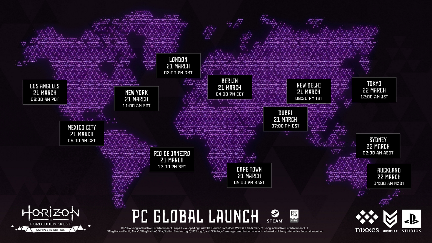 Как принято, компания опубликовала удобную инфографику, которая наглядно показывает точное время выхода в разных регионах и часовых поясах. В России игра станет доступна 21 марта в 18:00 по московскому времени в Steam и Epic Games Store.