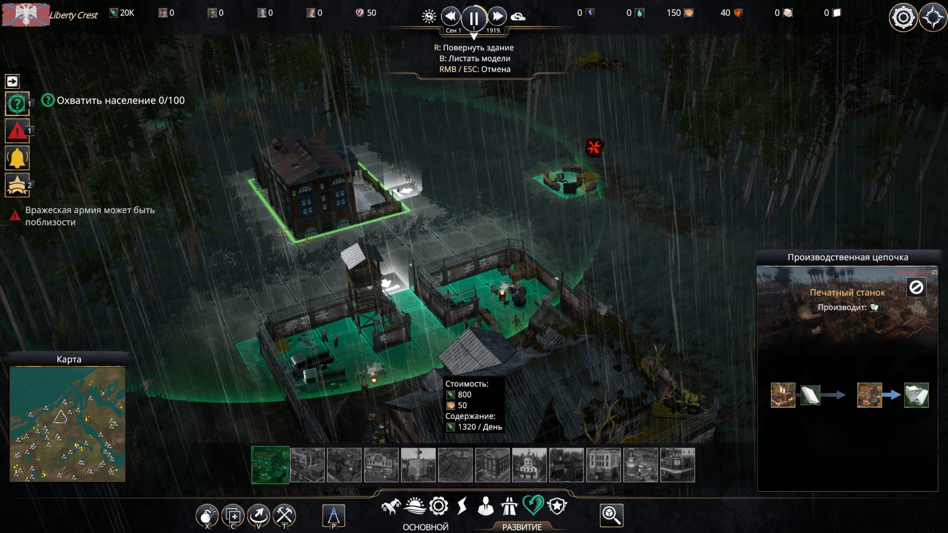 - Станьте настоящим магнатом - Чтобы деревья превращались в газеты, а руда — в пули, промышленность города должна работать как часы. Наладьте экономику и торговлю, а также управляйте хитросплетением из более чем 90 производственных цепочек, гибко расширяя их в соответствии с растущими запросами империи. А еще уделите внимание логистике, чтобы товары вовремя достигали нужных рук, ведь даже самая опытная армия ничего не сможет сделать без припасов. Не бойтесь запутаться во всем этом многообразии: несмотря на свои глубину и масштаб, игровой процесс всегда остается доступным и понятным.
