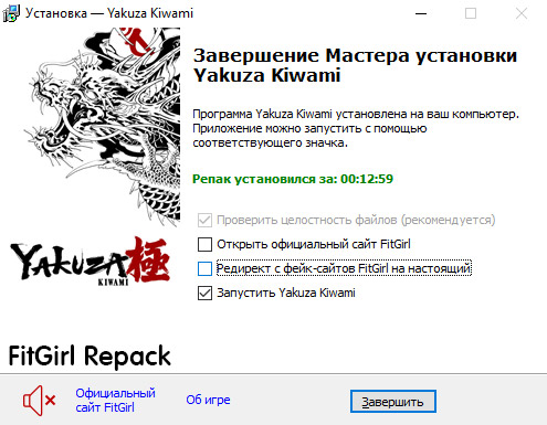 • После установки доступна опция проверки контрольных сумм всех файлов, чтобы убедиться, что репак установился нормально