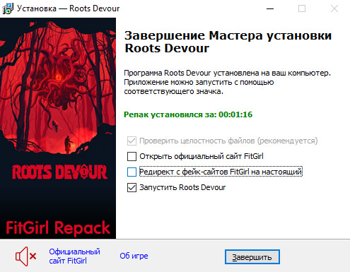 - После установки доступна опция проверки контрольных сумм всех файлов, чтобы убедиться, что репак установился нормально