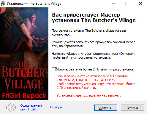 - Репак основан на ISO-образе The.Butchers.Village-SKIDROW: sr-thebutchersvillage.iso (18,005,880,832 байта)