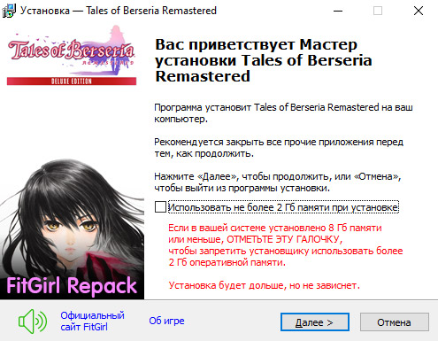 - Для установки репака требуется минимум 2 Гб свободной оперативной памяти (включая виртуальную)