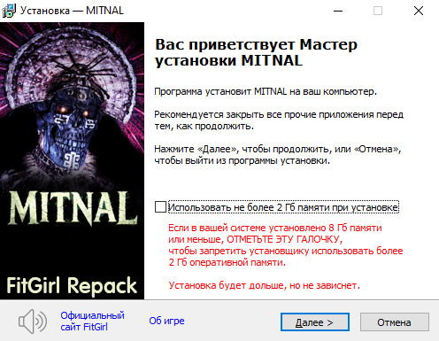 - Для установки репака требуется минимум 2 Гб свободной оперативной памяти (включая виртуальную)