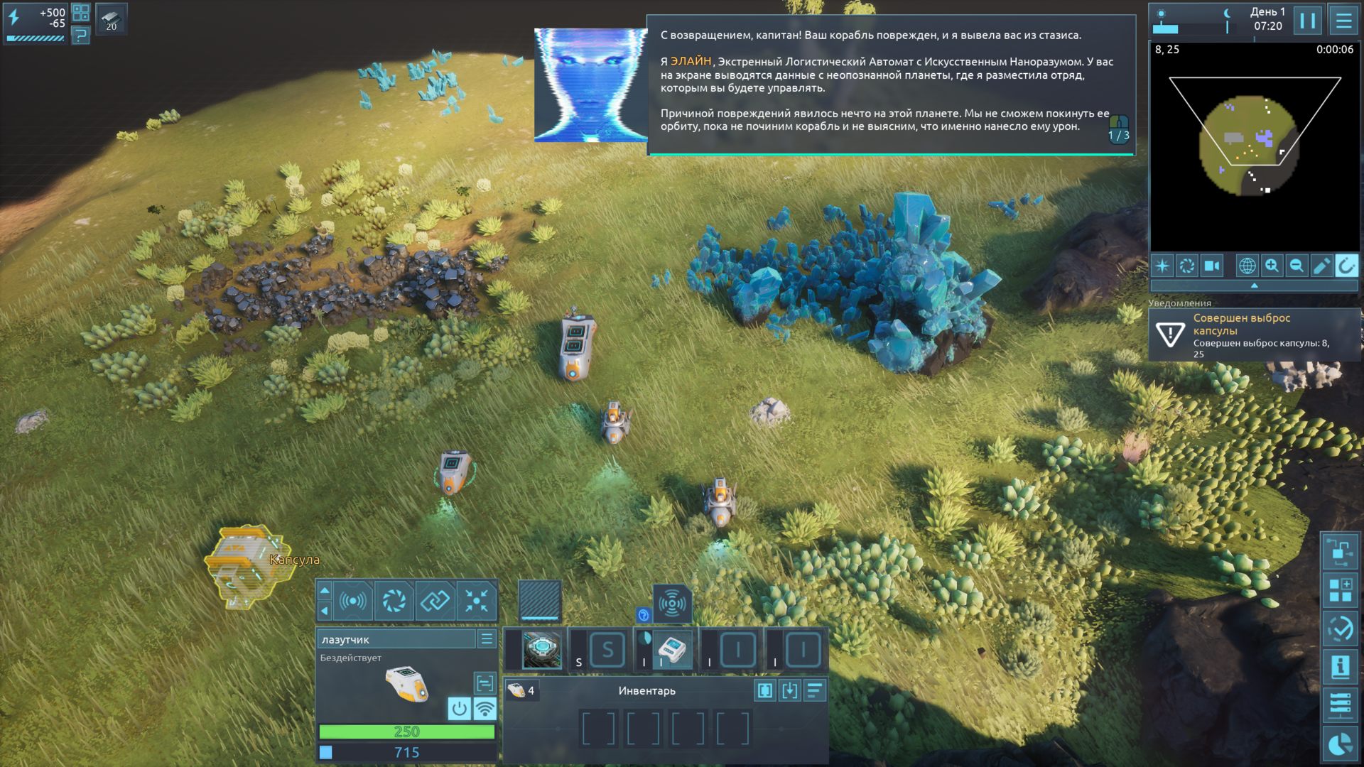 У вас на корабле авария, и нужно отправить ботов на поверхность неизвестной планеты, чтобы возвести сооружения, необходимые для ремонта. Вас курирует бортовой ИИ по имени ЭЛЕЙН, так что стройте, выживайте и процветайте. Но так ли прост этот неизведанный мир?