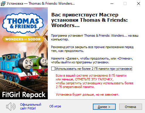 - Репак основан на ISO-образе Thomas.and.Friends.Wonders.of.Sodor-RUNE: rune-thomas.and.friends.wonders.of.sodor.iso (8,025,210,880 байт)