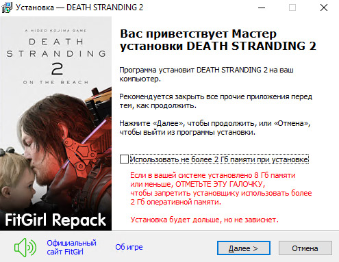 - Установлен DEATH.STRANDING.2.ON.THE.BEACH.Language.Pack‑RUNE (10.2 Гб)