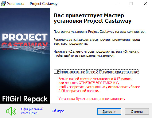 - Для установки репака требуется минимум 2 Гб свободной оперативной памяти (включая виртуальную)