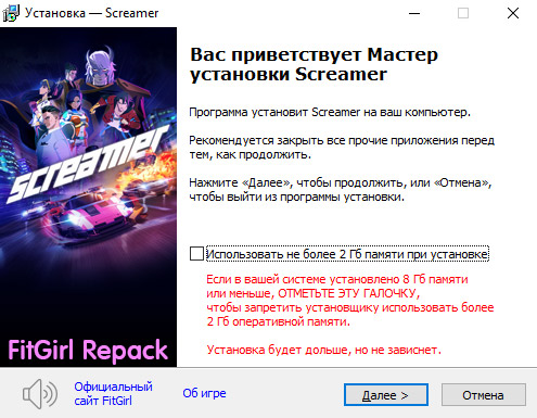 • Для установки репака требуется минимум 2 Гб свободной оперативной памяти (включая виртуальную)