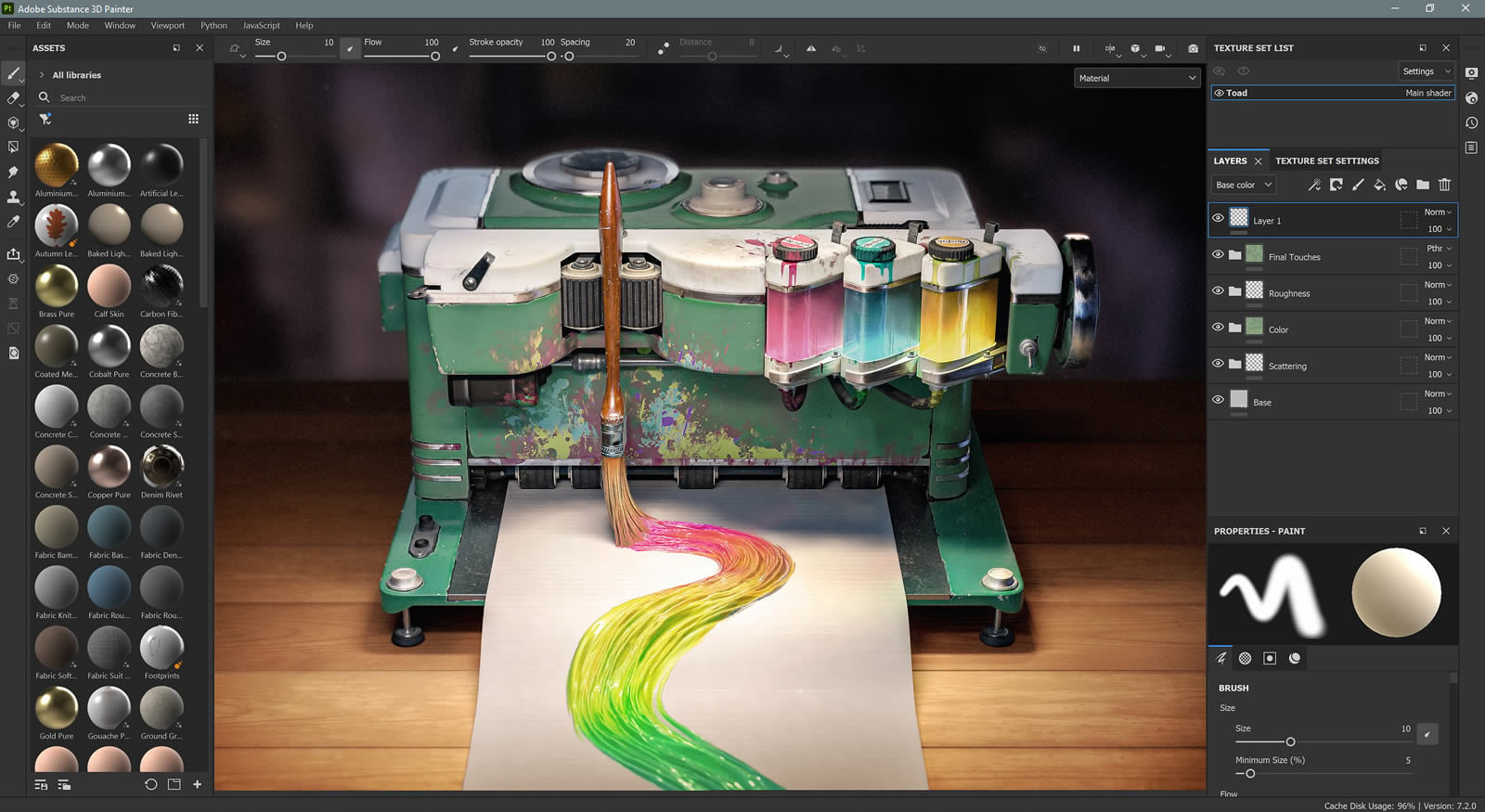 Adobe Substance 3D Painter — мощное приложение, позволяющее рисовать трехмерные текстуры модели в реальном времени. В программе есть инструменты, необходимые для удобного текстурирования 3D-pecypcoв по вашим естественным жестам рук, от расширенных кистей до умных материалов, которые автоматически адаптируются к вашей модели. Adobe Substance 3D Painter широко используется в производстве игр и фильмов, а также в индустрии дизайна, одежды и в архитектуре. Это приложение для 3D-текстурирования, которое пригодится творческим профессионалам во всем мире.